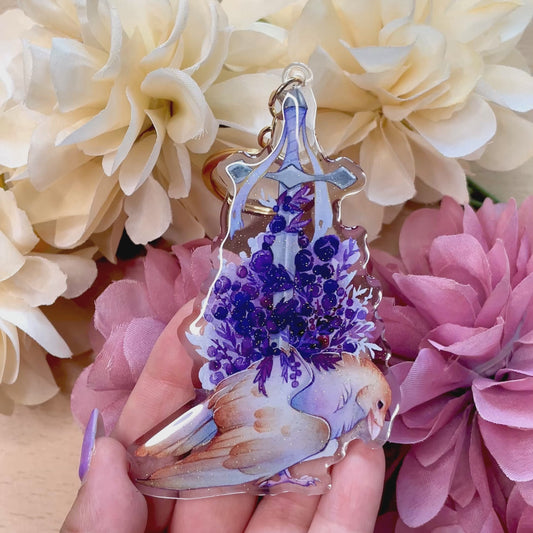 Longsword, Albino Raven - XL Glitter Epoxy Keychain