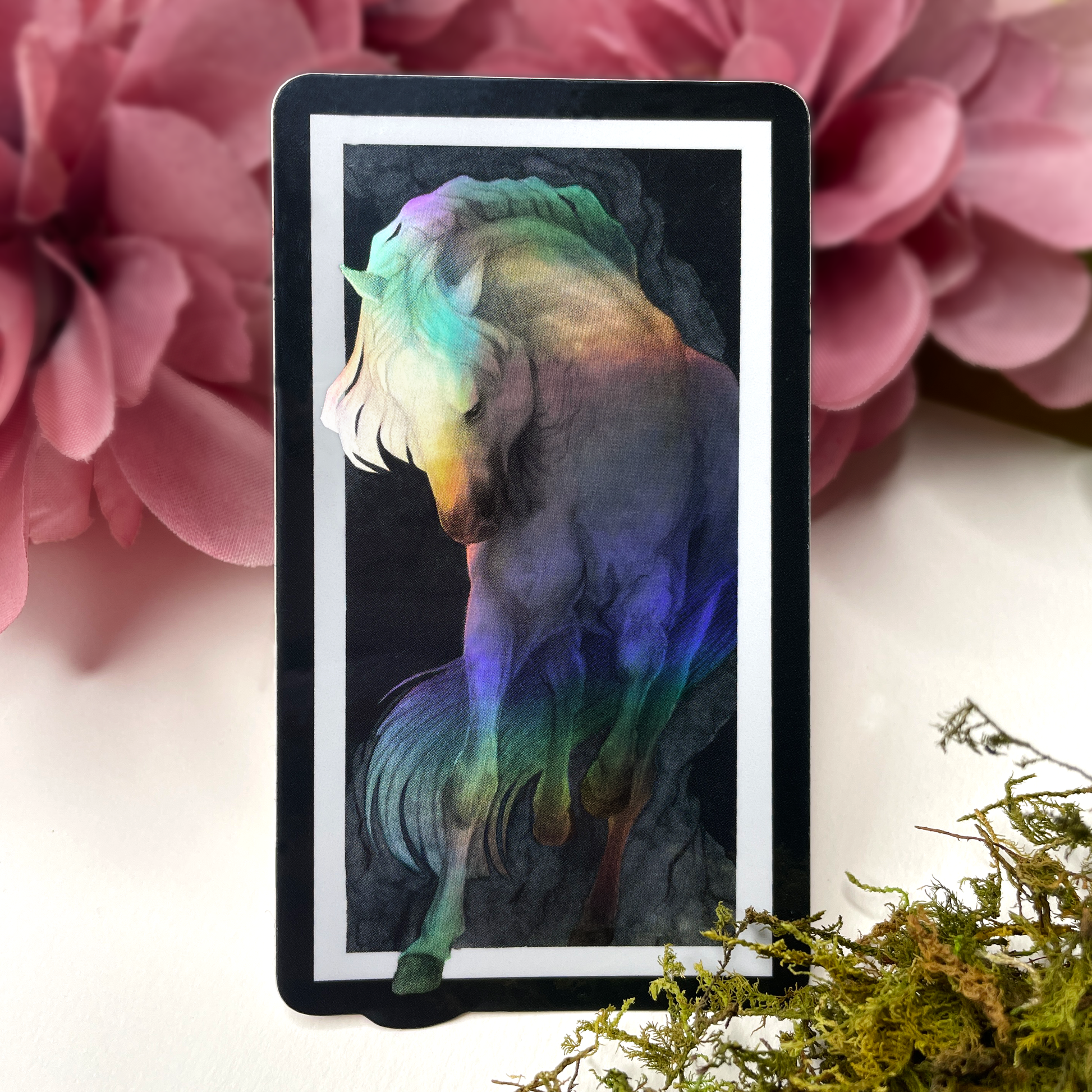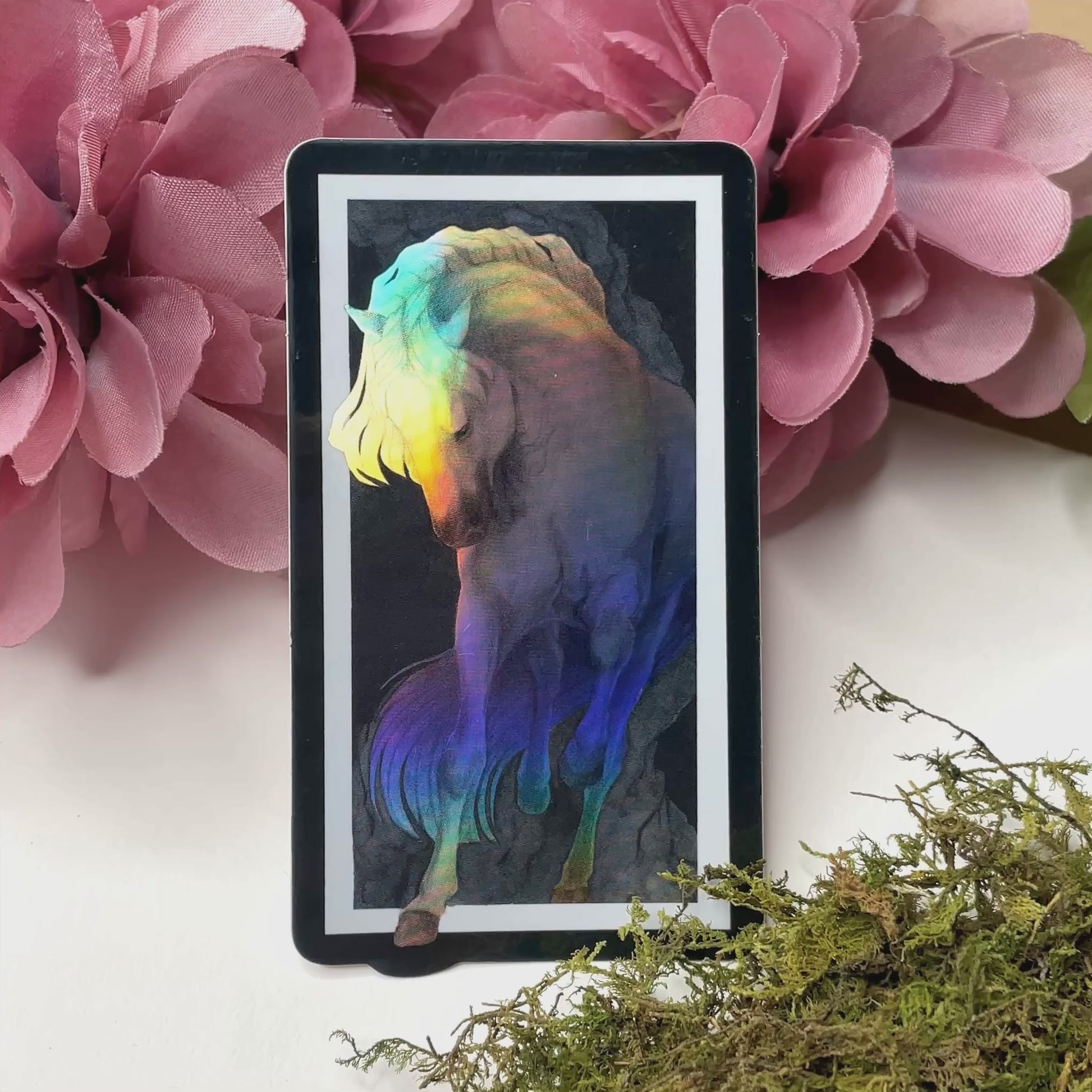 - Holographic vinyl sticker; the horse has the holographic effect on it.