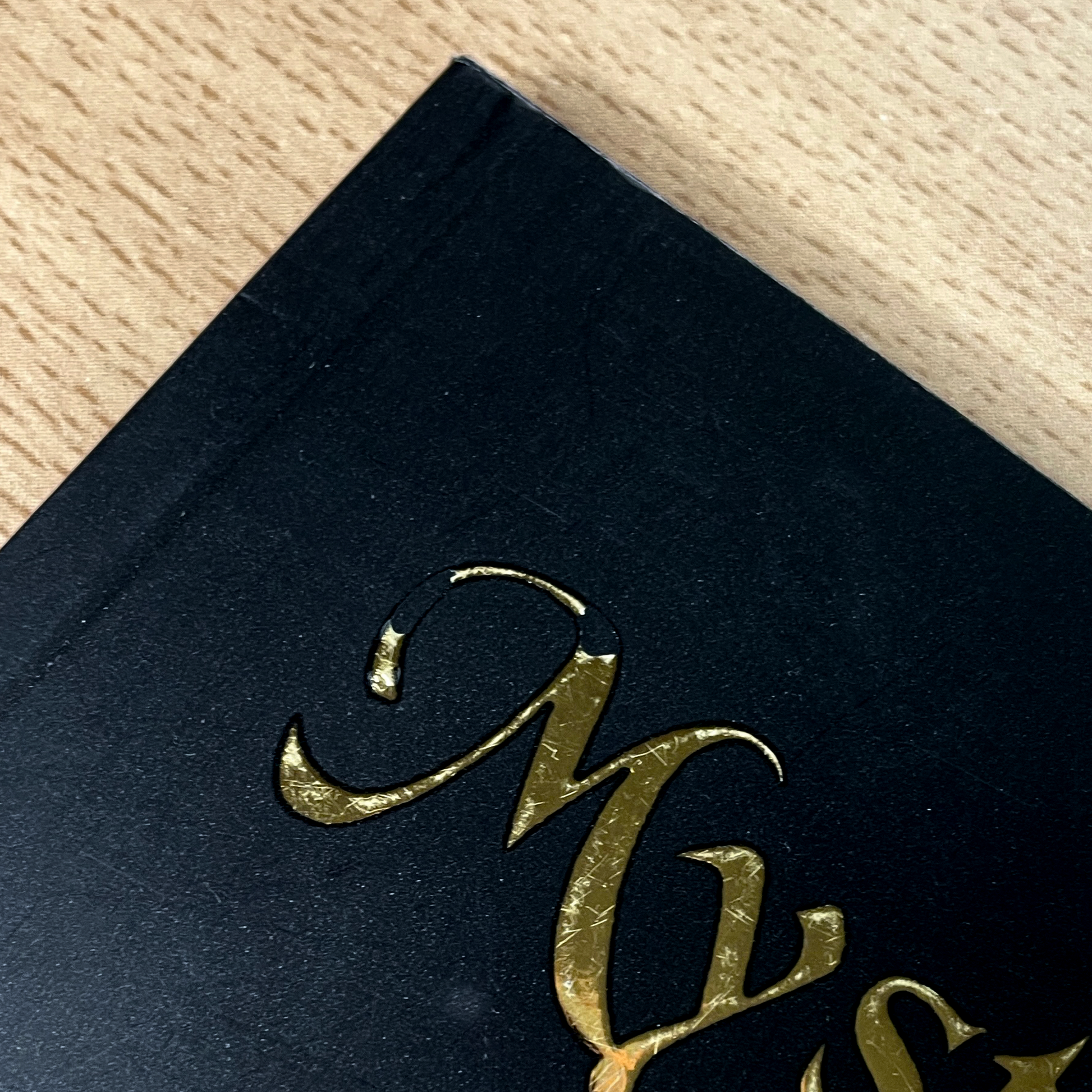 The size of the book is A4 and it has 60 pages. Some details in the cover are covered in golden foil.