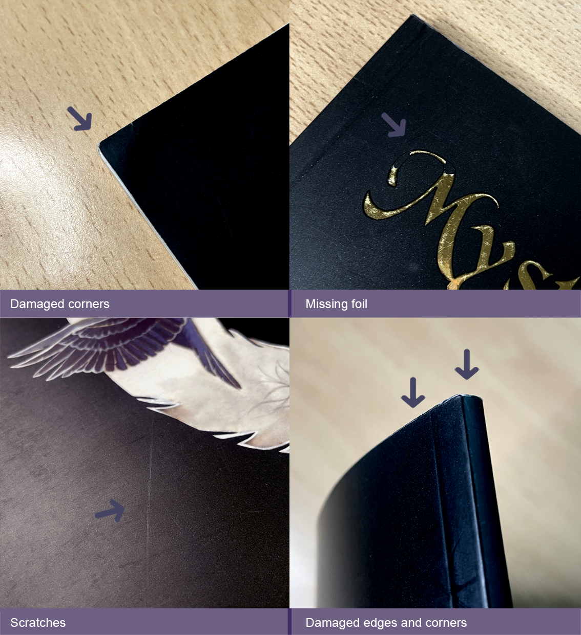 White Cover: The books have a white cover instead of the black one they should have. Other than that, the rest of the book is perfect (this was a printing mistake, that's the reason it's cheaper).